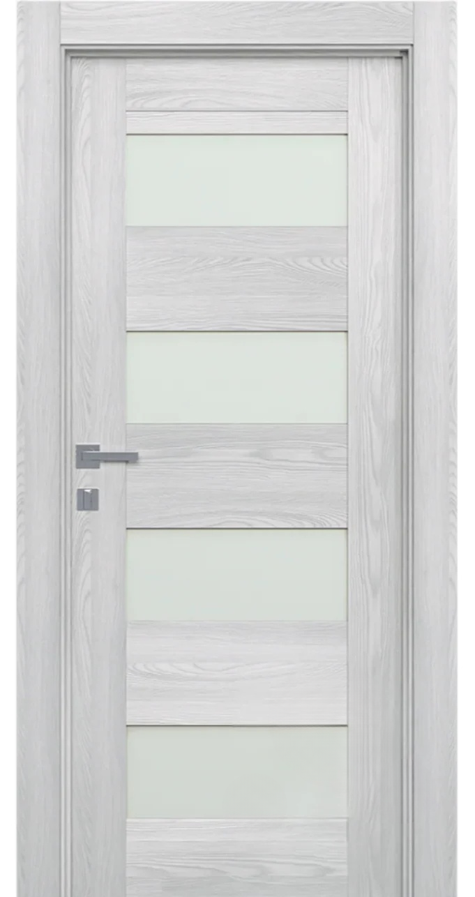 Eco-friendly materials, clean lines, and glass panels define this door’s timeless look with a modern twist. The minimalistic slab design blends seamlessly into any room. Featuring four frosted white glass inserts and three Shaker-style horizontal rails, the Avon 07-08 Vetro adds a sophisticated accent to your home or apartment. Its refined Snow White finish brings a fresh, elegant touch to your interior.