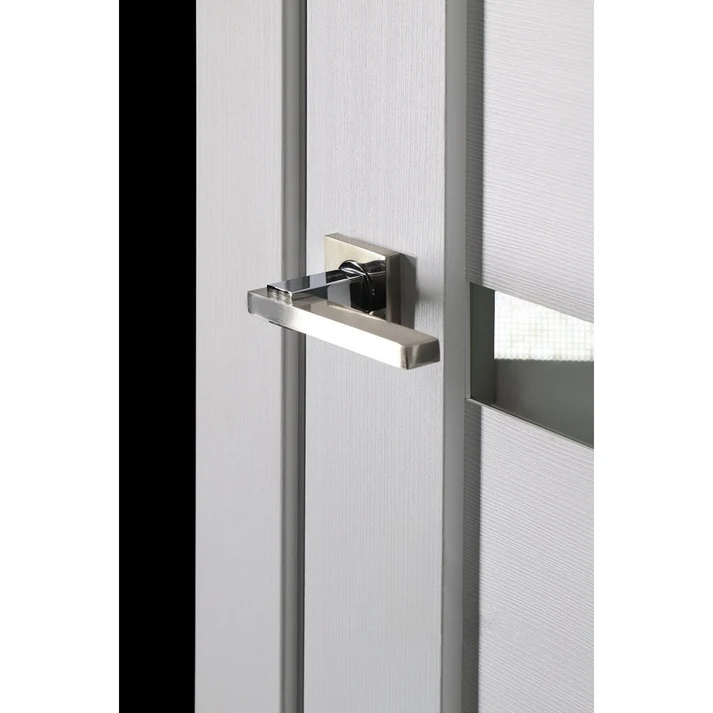 The Leora Vetro interior door features clean lines and a minimalist style. Its sleek design is highlighted by five equally sized frosted glass inserts, which—paired with the elegant Bianco Noble finish—bring brightness and harmony to any room.