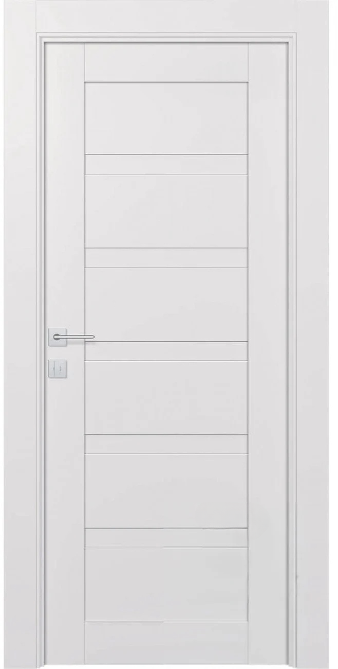 Orleo combines a universal shade with strict geometric shapes, aligning perfectly with minimalist fashion trends. The slab design's simple yet impeccable aesthetic transforms the classic interior door into a spectacular centerpiece. This modern minimalist style imparts a sense of lightness and freshness to the space.